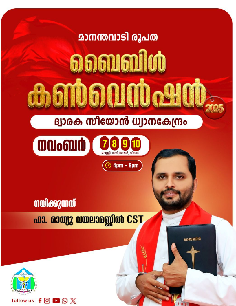 ചില സാങ്കേതിക കാ‍രണങ്ങളാൽ 2025 നവംബർ മാസം 28, 29, 30 തീയതികളിൽ മണിമൂളി പാസ്റ്ററൽ സെൻ‌റ്ററിൽ വച്ച് നടത്തുവാൻ നിശ്ചയിച്ചിരുന്ന വിവാഹ ഒരുക്ക കോഴ്സ് ക്യാൻസൽ ചെയ്തിരിക്കുന്നു. -- ഡയറക്ടർ, ഫാമിലി അപ്പസ്റ്റോലേറ്റ് FOR MORE DETAILS OF MARRIAGE PREPARATION COURSE - PLEASE SCROLL DOWN
