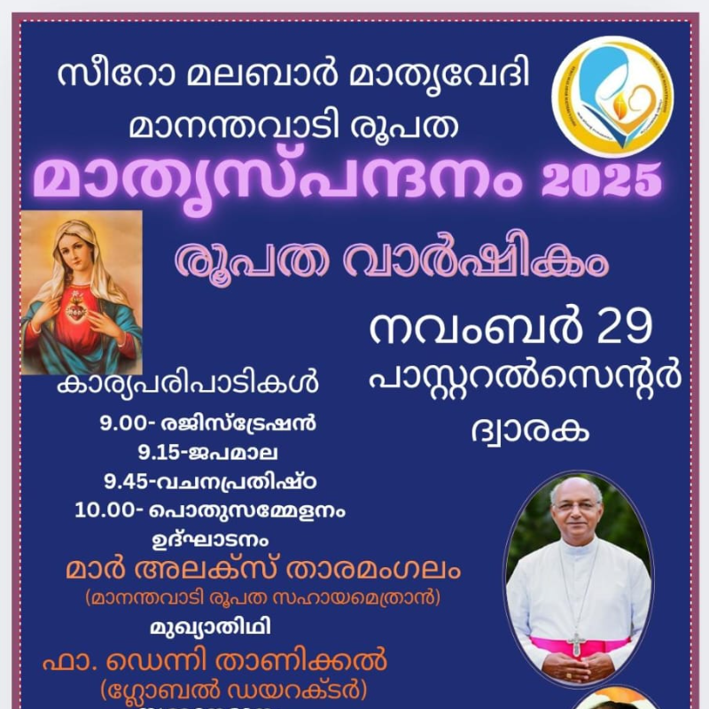 The eparchy of Mananthavady was erected by His Holiness Pope Paul VI, by the Bull Quanta Gloria of March 1, 1973 bifurcating the vast diocese of Tellicherry.